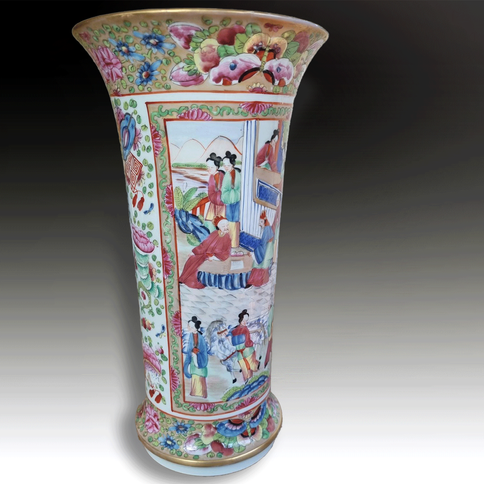 Antique Chinese large "Rose Mandarin" Trumpet vase Circa 1830 33cm H (13 ")