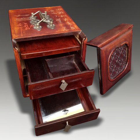 Antique Chinese Qing Dynasty travelling jewellery case w calligraphy late 19th C