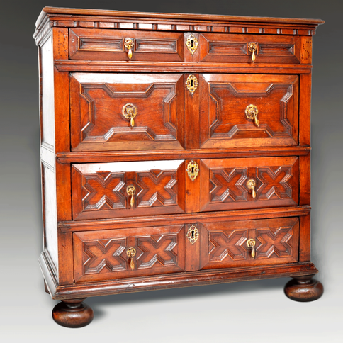 Charles II oak chest of drawers with geometric mouldings Circa 1675