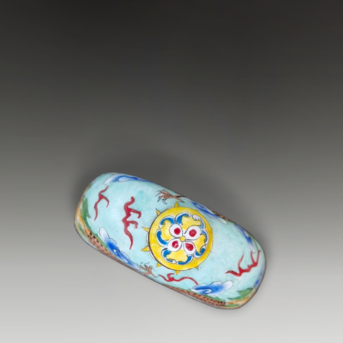 Chinese enamel on copper snuff bottle probably dating to the Qianlong period. Finely painted with three five claw Dragons chasing the "Flaming Pearl". The Buddhist Symbol of Wisdom.