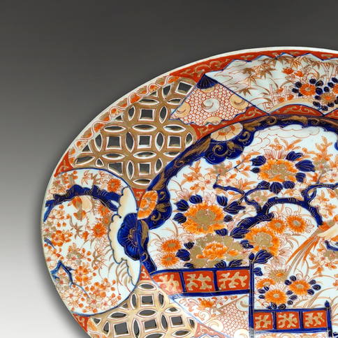 Japanese Meiji period large pierced oval Imari charger. Superb quality- 40cm